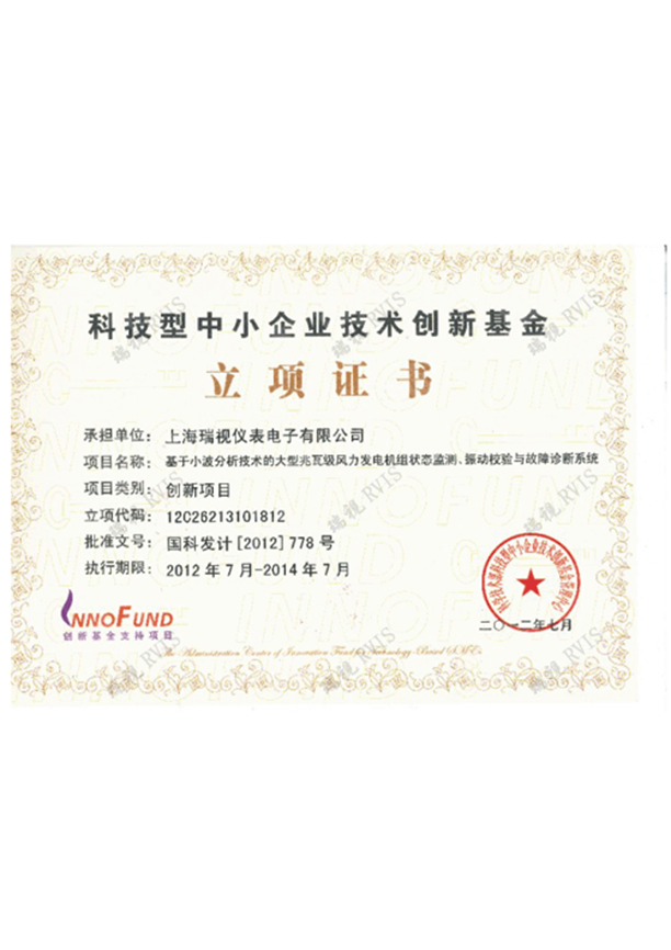 國家級創(chuàng)新基金項(xiàng)目立項(xiàng)證書